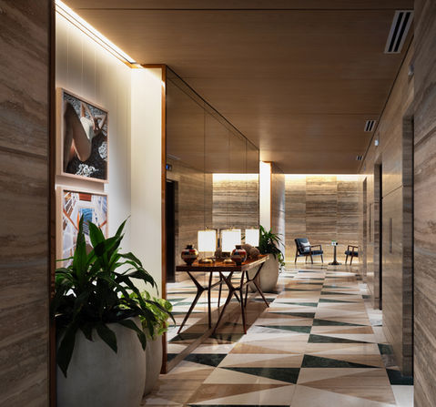Working closely with Kobi Karp Architecture, Tara Bernerd & Partners completed the full interior architecture and design for the lobbies, Honey Fitz the lobby bar and all-day dining, extensive spa, 148 hotel rooms, and 50 condo hotel rooms and private residences.